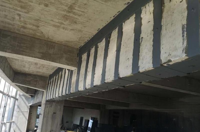 1.作業(yè)原理外包鋼加固法是指混凝土柱或梁的四角或兩角以型鋼包裹,而且內(nèi)部灌注粘結(jié)劑,以到達(dá)全體受力的一種加固辦法。 2.工藝流程基面處理鋼件處理、拼裝埋管注膠查看及補(bǔ)灌3.施工過程:(1)基面處理:用角磨機(jī)去除砼外表浮層,直至徹底顯露堅實(shí)新結(jié)構(gòu)面,除掉混凝土外表呈現(xiàn)的蜂窩、麻面等現(xiàn)象,并依據(jù)實(shí)踐混凝土狀況進(jìn)行修補(bǔ)。(2)鋼件處理、拼裝:鋼件粘接面要進(jìn)行除銹和打磨處理,直至鋼件外表呈現(xiàn)金屬光澤,并用丙酮擦洗。并依據(jù)規(guī)劃要求對鋼件進(jìn)行拼裝焊接,角鋼要與原結(jié)構(gòu)嚴(yán)密貼實(shí),綴板和角鋼搭接要三面圍焊。(3